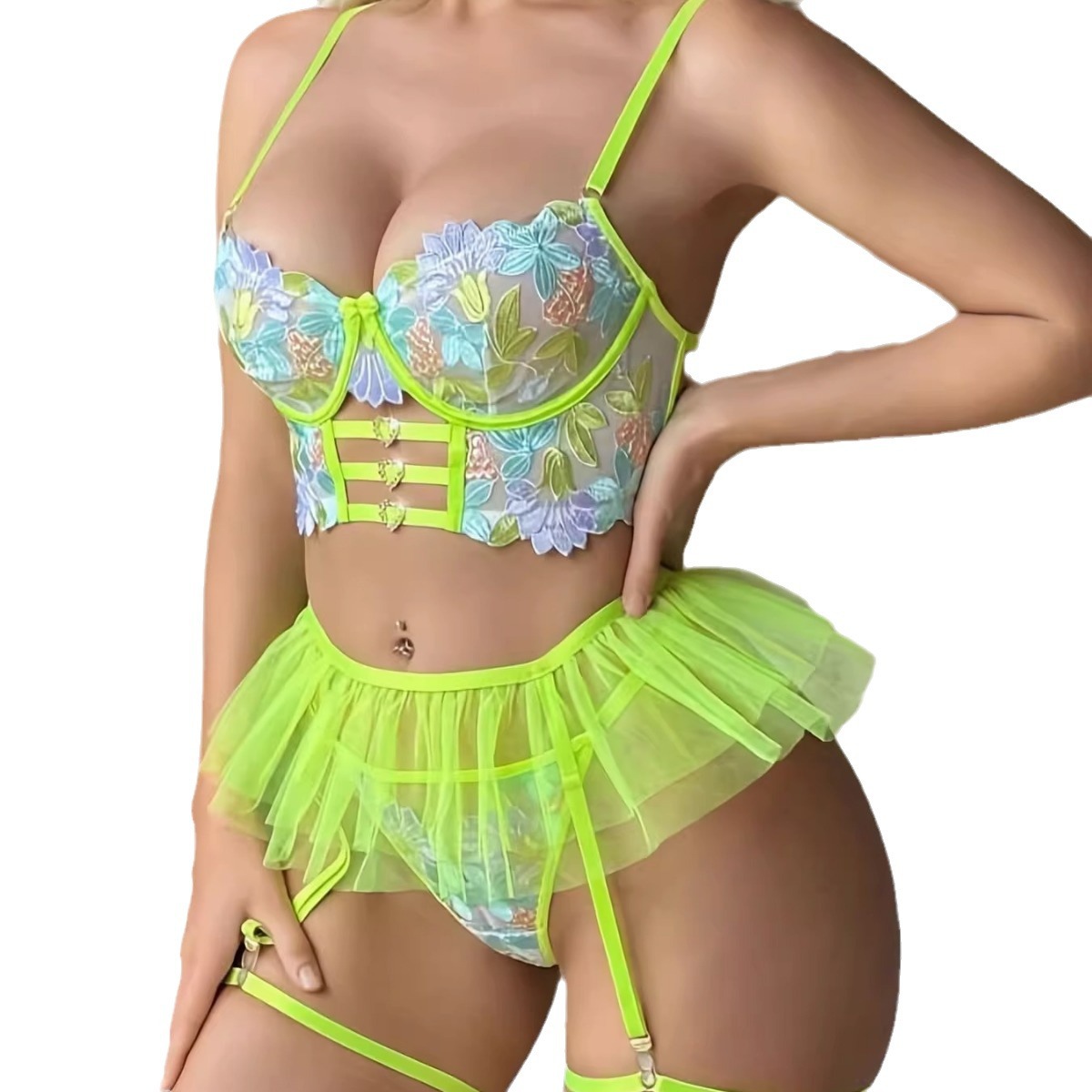 European and American sexy lingerie couple lace three-point suit sexy small chest gathered pure desire lingerie free to take off pajamas